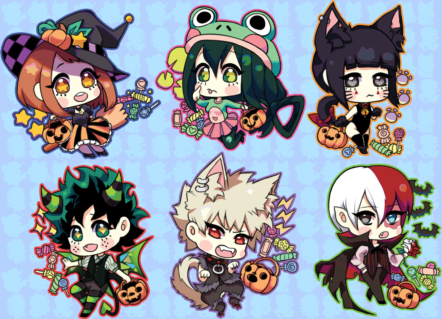 Halloween Au Stickers Pack Bakugou Katsuki Midoriya Izuku Etsy Anime Hero Boku No Hero Academia