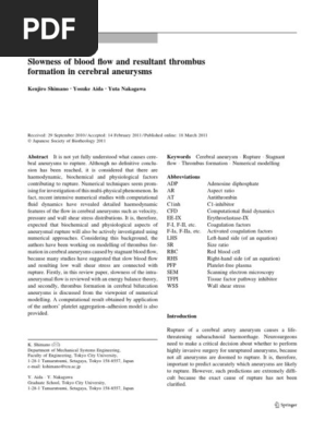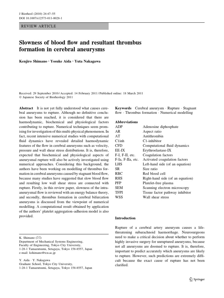 Slowness Of Blood Flow And Resultant Thrombus Formation In Cerebral Aneurysms Springerlink