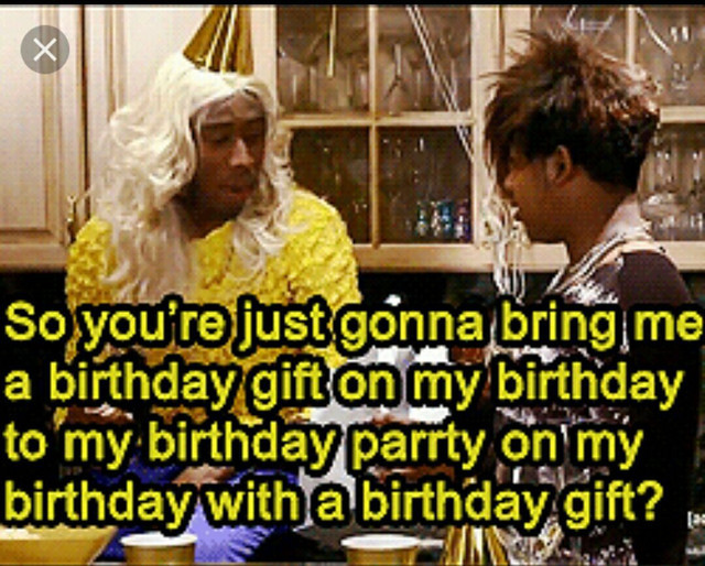 So You Just Gonna Bring Me A Birthday Gift On My Birthday To My Birthday Party On My Birthday With A Birthday Gift Tylerthecreator